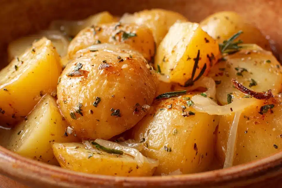 When combined, these ingredients create a cohesive dish where the potatoes absorb the savory seasoning while maintaining a soft yet structured texture. The slow cooking process allows each component to blend gradually, resulting in consistent flavor throughout.