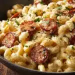 When time is tight and everyone’s hungry, this creamy pasta hits all the right notes: fast, filling, and full of bold flavor. The smoked sausage adds a deep, savory taste that pairs beautifully with the creamy sauce, while the pasta soaks up every drop of deliciousness.