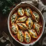 These easy spinach and ricotta stuffed shells are a comforting, cheesy vegetarian dinner baked in tomato sauce. Healthy, hearty, and perfect for meal prep or family dinners.