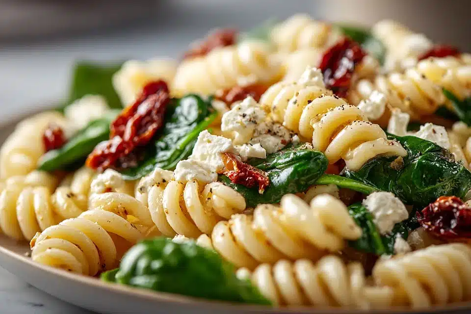 Spinach Pasta Salad with Sun-Dried Tomatoes & Feta – 6 Simple Fresh