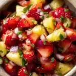 Strawberry Pineapple Salsa is ideal for summer picnics, backyard barbecues, or as a topping for tacos and grilled meats. Serve it with tortilla chips for a light appetizer or spoon over grilled fish or chicken for a tropical flavor boost. It can also complement brunch dishes, such as avocado toast or as a side for crostini.