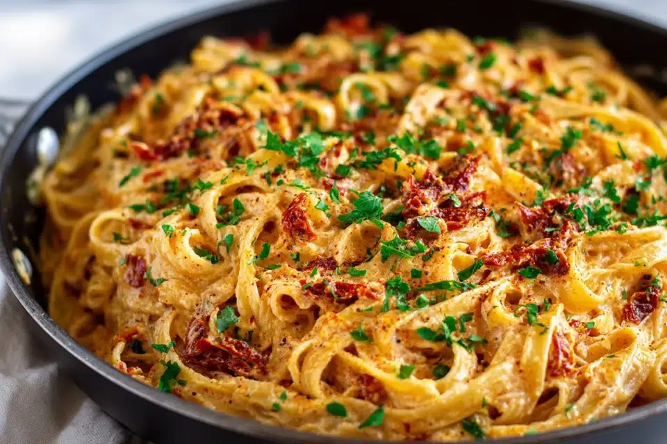 A rich, creamy vegan pasta made with sun-dried tomatoes, garlic, and blended cashews or coconut milk. Full of flavor and completely dairy-free.