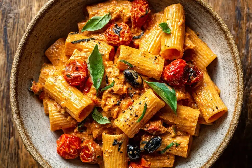 This rustic Eggplant and Sun-Dried Tomato Ricotta Pasta combines roasted eggplant, tangy sun-dried tomatoes, and creamy ricotta in a vibrant, satisfying vegetarian pasta dish.